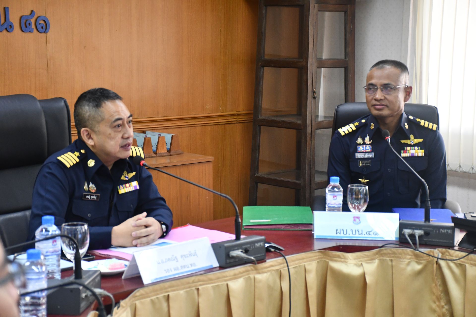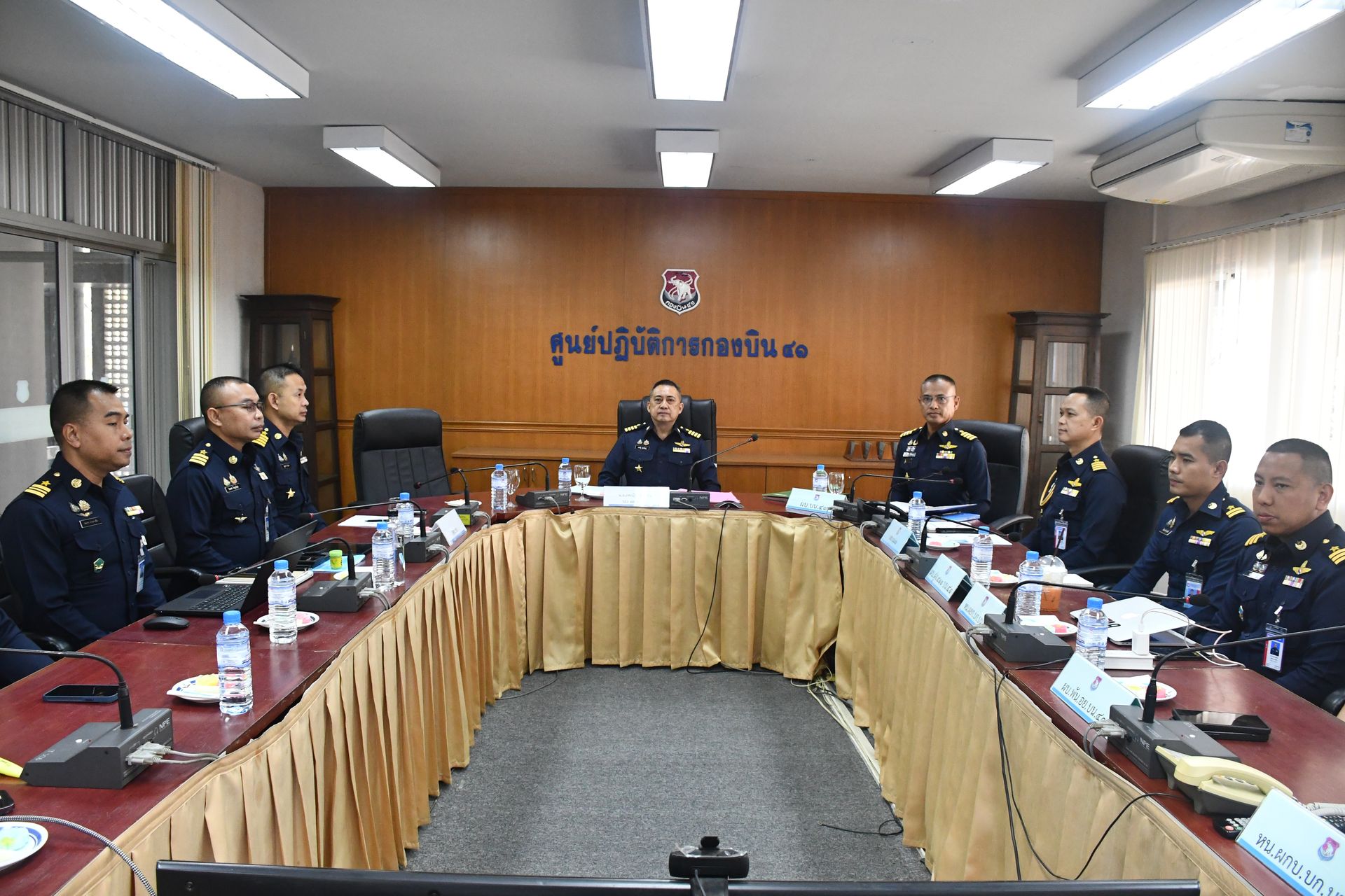 ในโอกาสนี้ นาวาอากาศเอก ธีระยุทธ เกื้อสกุล ผู้บังคับการกองบิน 41 พร้อมด้วยหัวหน้าหน่วยขึ้นตรงกองบิน 41 ให้การต้อนรับคณะตรวจสอบฯ พร้อมทั้งเข้าร่วมรับฟังการบรรยายสรุปและแนวทางการปฏิบัติ ณ ห้องประชุมกองบังคับการ กองบิน 41