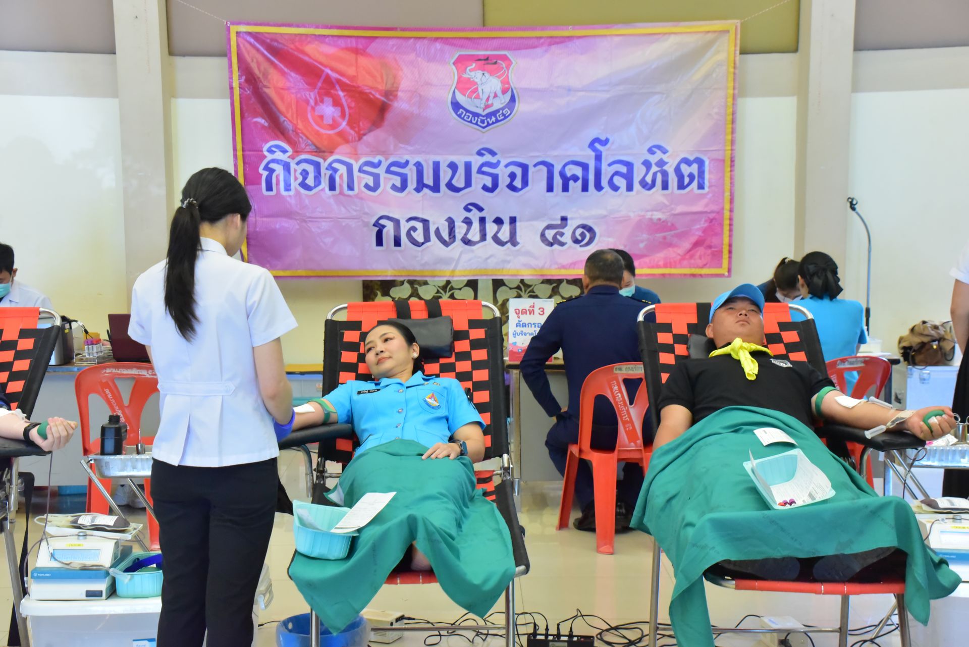 ในโอกาสนี้ กองบิน 41 ได้นำข้าราชการ ลูกจ้าง พนักงานราชการ ทหารกองประจำการ และสมาชิกชมรมคู่สมรสทหารอากาศ ตลอดจนจิตอาสาพระราชทาน กองบิน 41 ร่วมบริจาคโลหิต