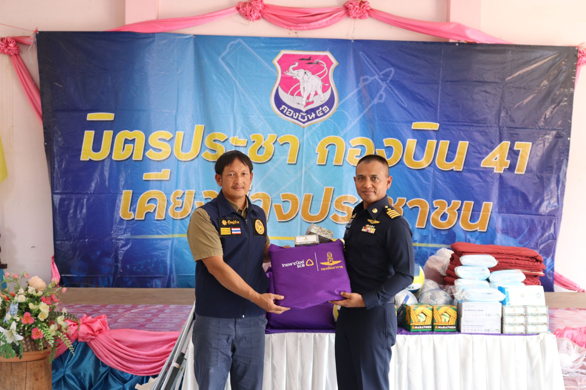 เมื่อวันที่ 27 มีนาคม 2569 นาวาอากาศเอก ธีระยุทธ เกื้อสกุล ผู้บังคับการกองบิน 41 เป็นประธานในพิธีเปิดกิจกรรม “เสริมสร้างความร่วมมือของมวลชนเพื่อความมั่นคง กองบิน 41 ครั้งที่ 2/2569” ณ โรงเรียนบ้านม่วงฝั่งซ้าย ตำบลแม่สอย อำเภอจอมทอง จังหวัดเชียงใหม่ เพื่อสร้างความสัมพันธ์อันดีระหว่างหน่วยงานทหารและประชาชน ตามปณิธาน “กองทัพอากาศเคียงข้างประชาชน”