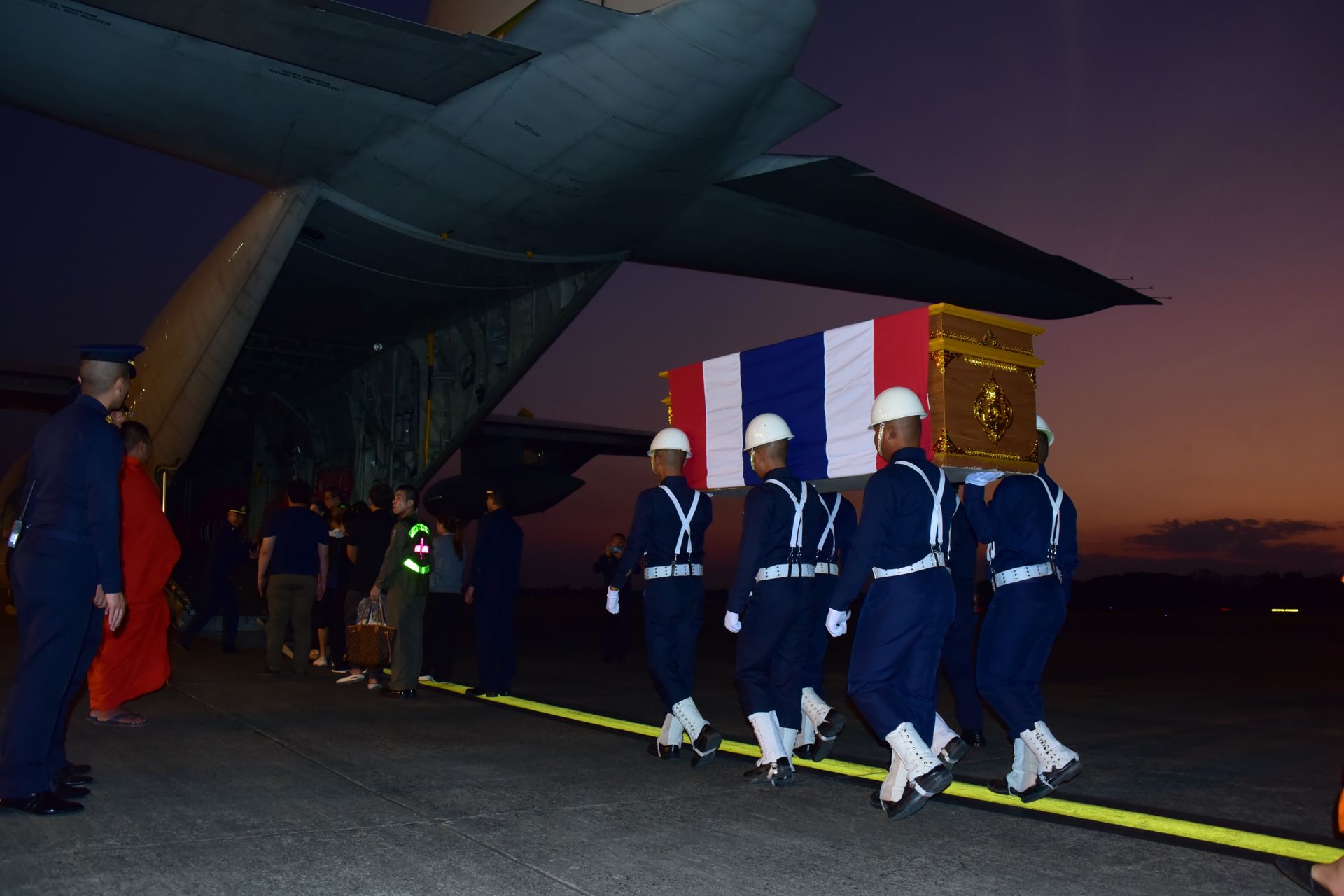 ร่างของนักบินทั้ง 2 จะถูกเคลื่อนย้ายขึ้นเครื่องบินลำเลียงของกองทัพอากาศ เพื่อมุ่งหน้าไปยังกรุงเทพมหานครเพื่อประกอบพิธีบำเพ็ญกุศลตามประเพณีทางศาสนาต่อไป