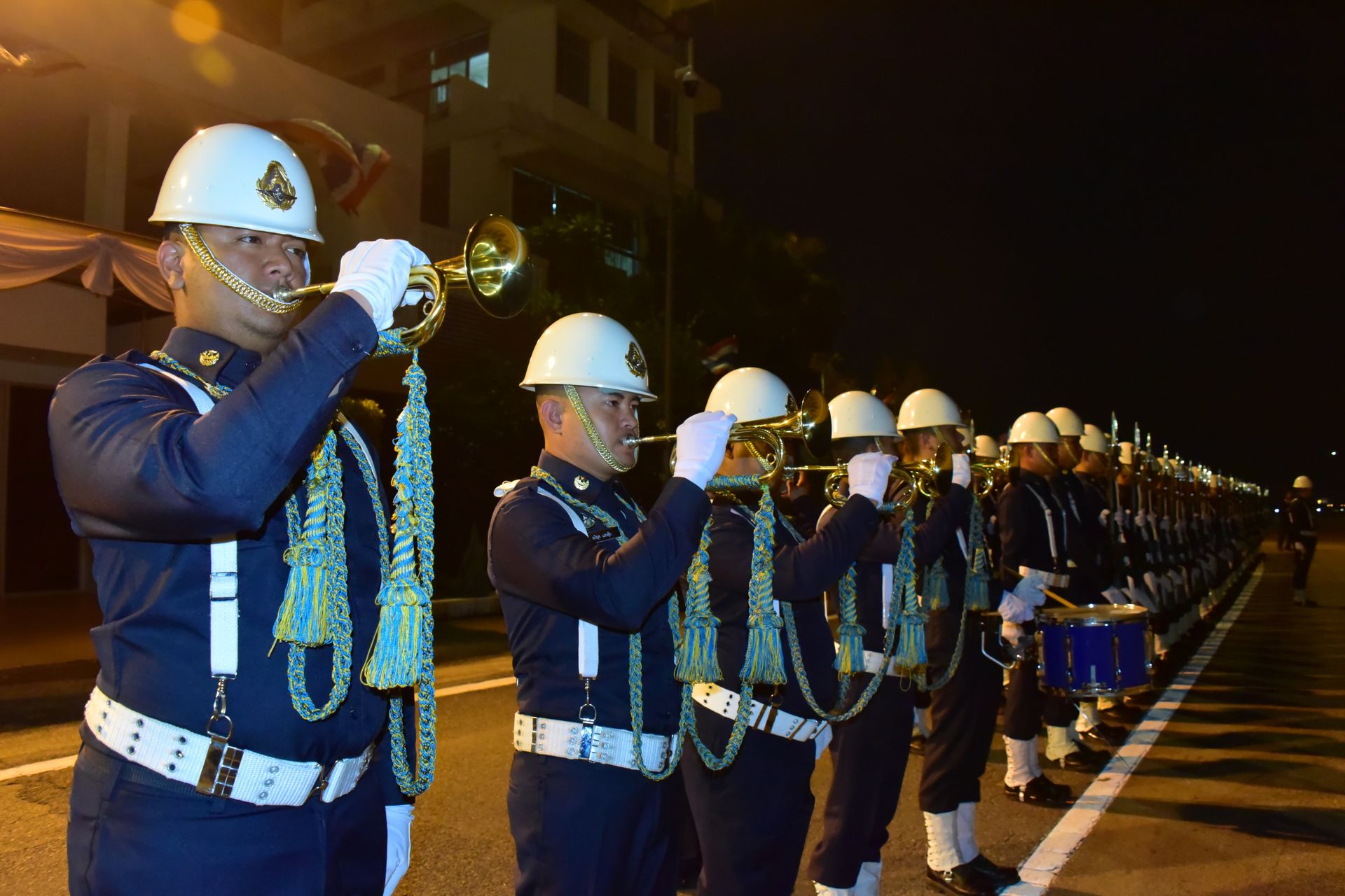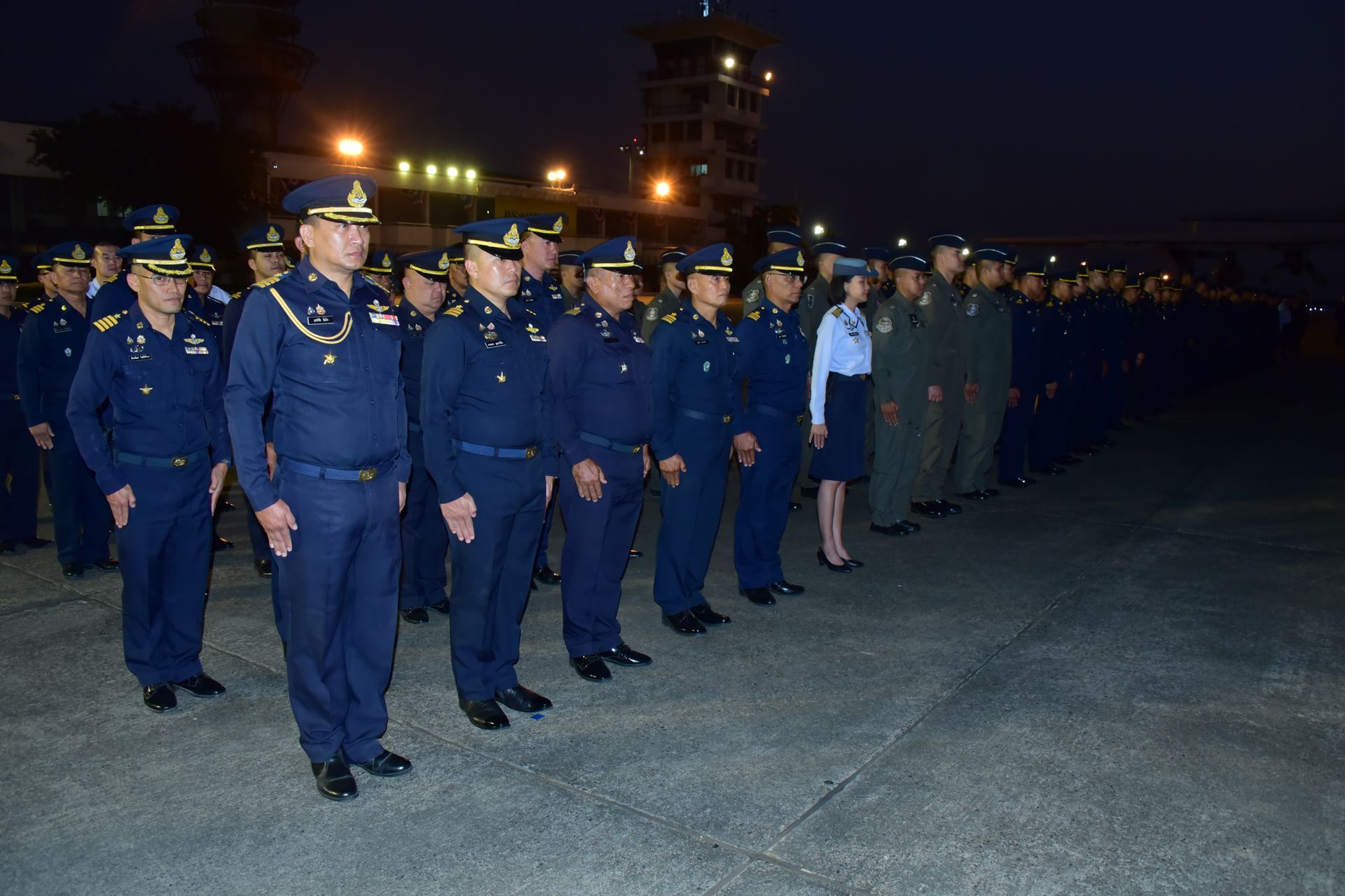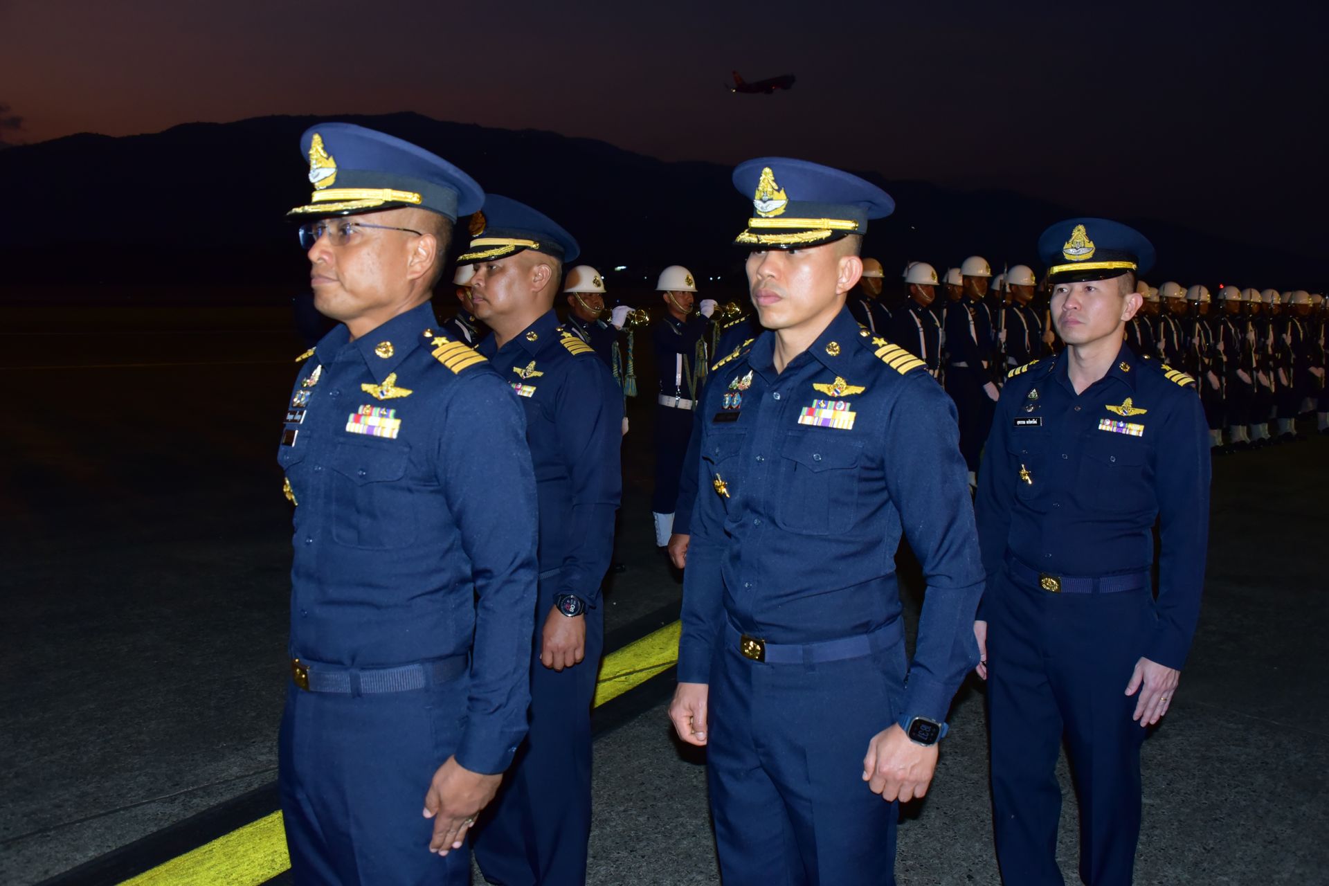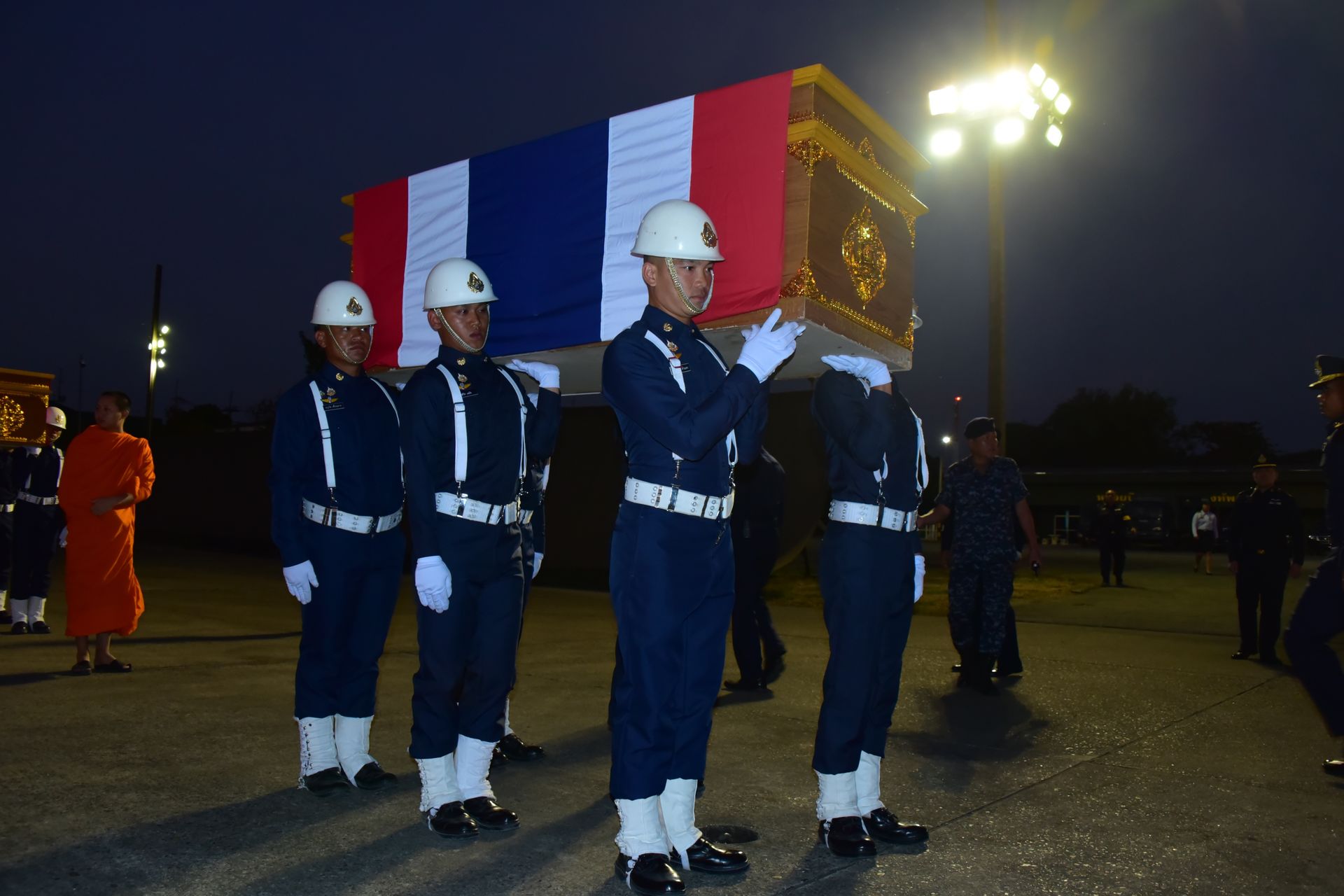 พิธีเริ่มต้นขึ้นอย่างสมเกียรติ โดยทหารกองเกียรติยศได้ตั้งแถวรับร่างของนักบินทั้ง 2 ท่าน ได้แก่